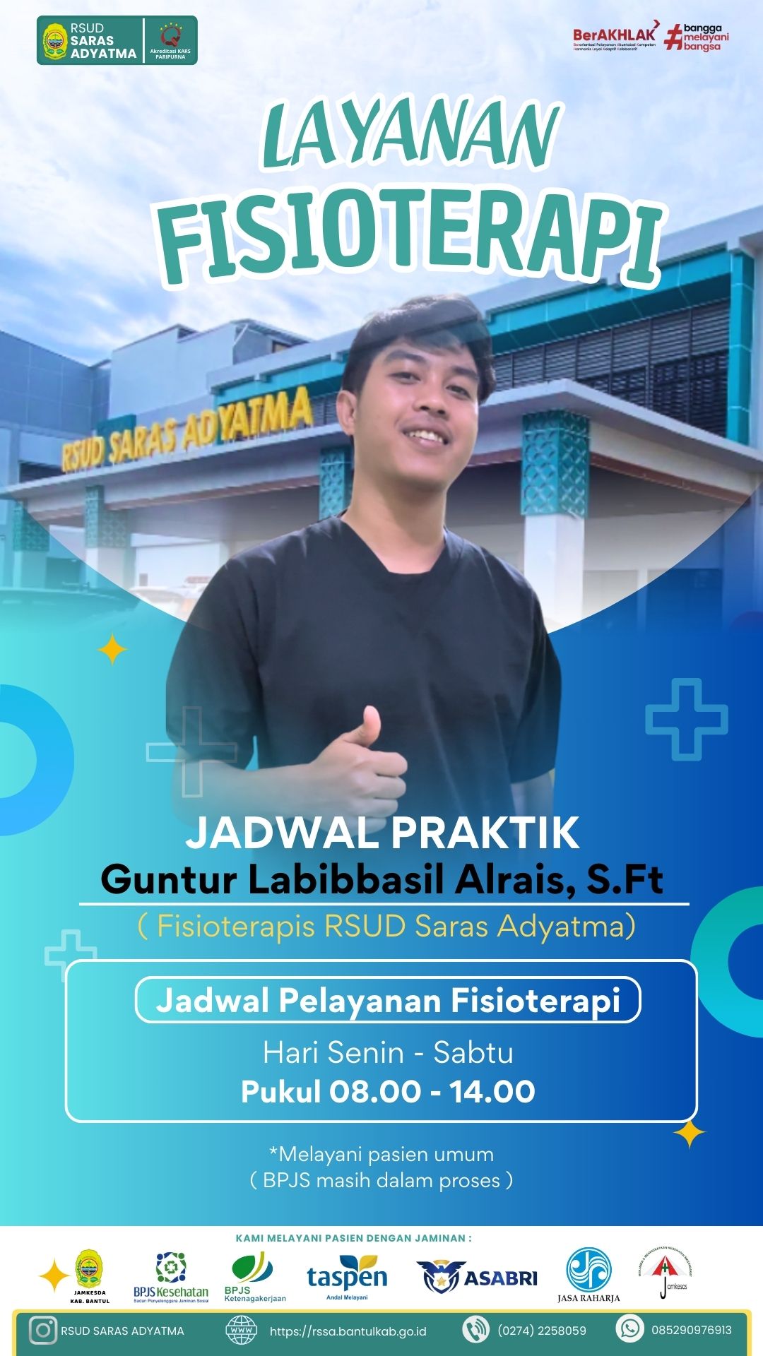 Selengkapnya Layanan Fisioterapi RSUD Saras Adyatma Solusi pemulihan gerak dan fungsi tubuh dengan pendampingan fisioterapis profesional.Kini layanan ...