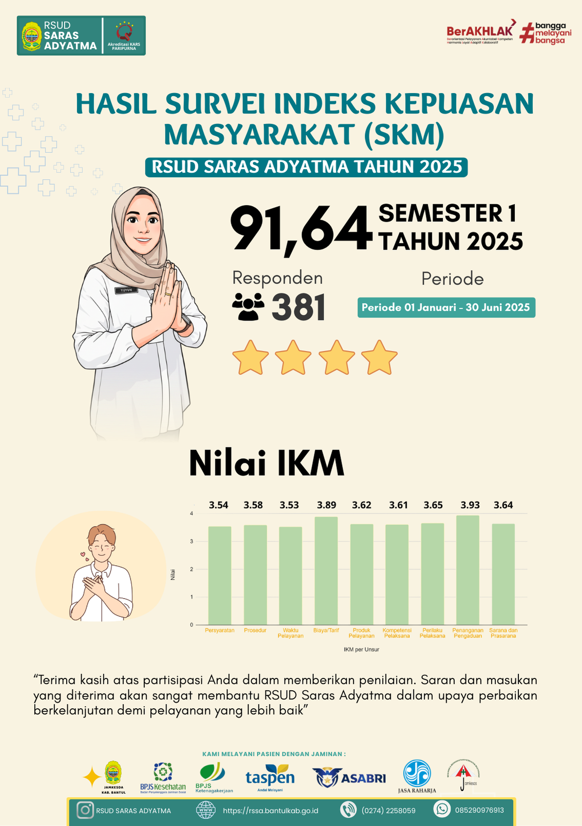 Terima kasih telah berpartisipasi memberikan penilaian dan masukan.Setiap saran yang diberikan akan menjadi motivasi bagi kami untuk terus meningkatkan mutu dan kualitas pelayanan kesehatan....
